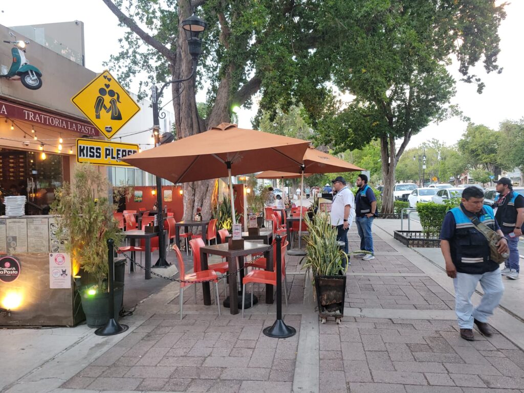 El sábado, el equipo de trabajo de Alfonso Lozano Poveda, secretario Técnico del Servicio Público de Mercados, reordenó la ubicación de mesas y sillas de negocios en Paseo de Montejo que ya habían tomado las banquetas (como Heladería Colón e Café Impala, entre otros), retiraron siete establecimientos que estaban en lugares prohibidos y clausuraron uno.