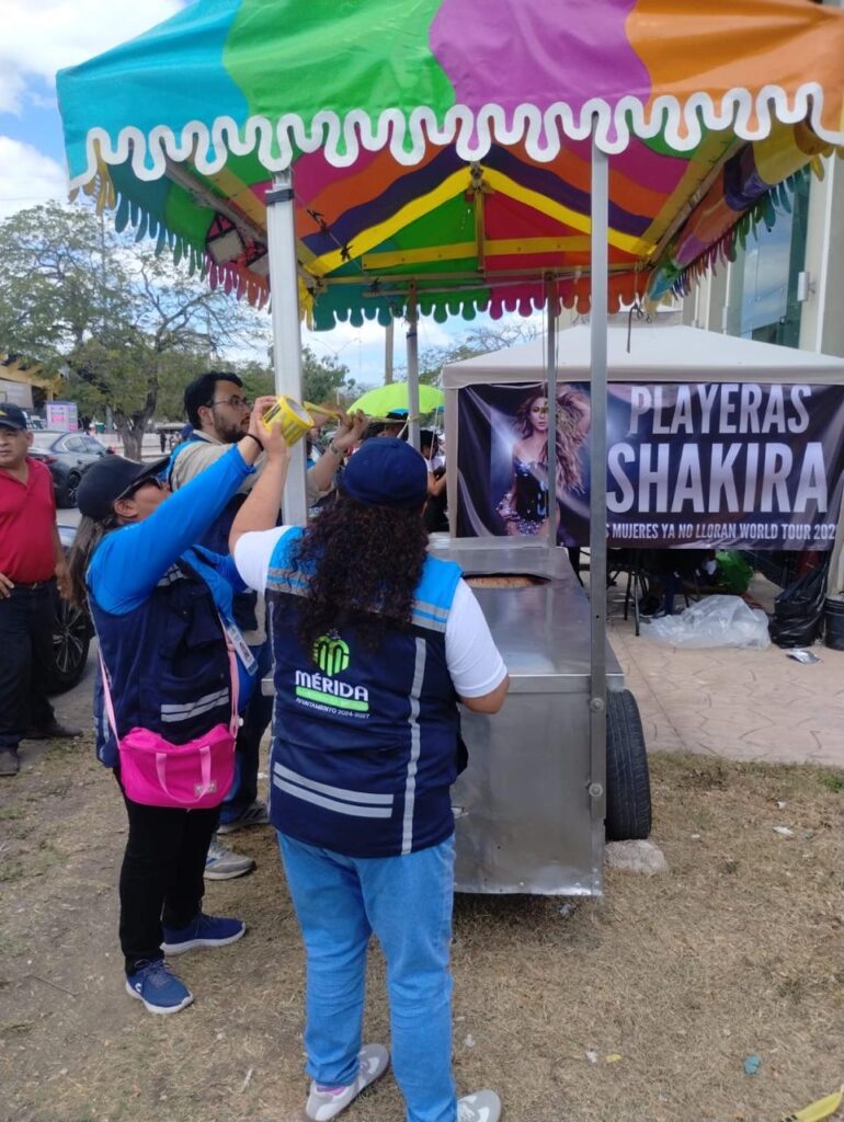 Sobre el operativo en el estadio Carlos Iturralde, Lozano Poveda detalló que, junto con la SSP, retiraron a entre 80 y 100 ambulantes que vendían desde churros, marquesitas, papas, esquites, hasta souvenirs y camisetas de la artista colombiana.